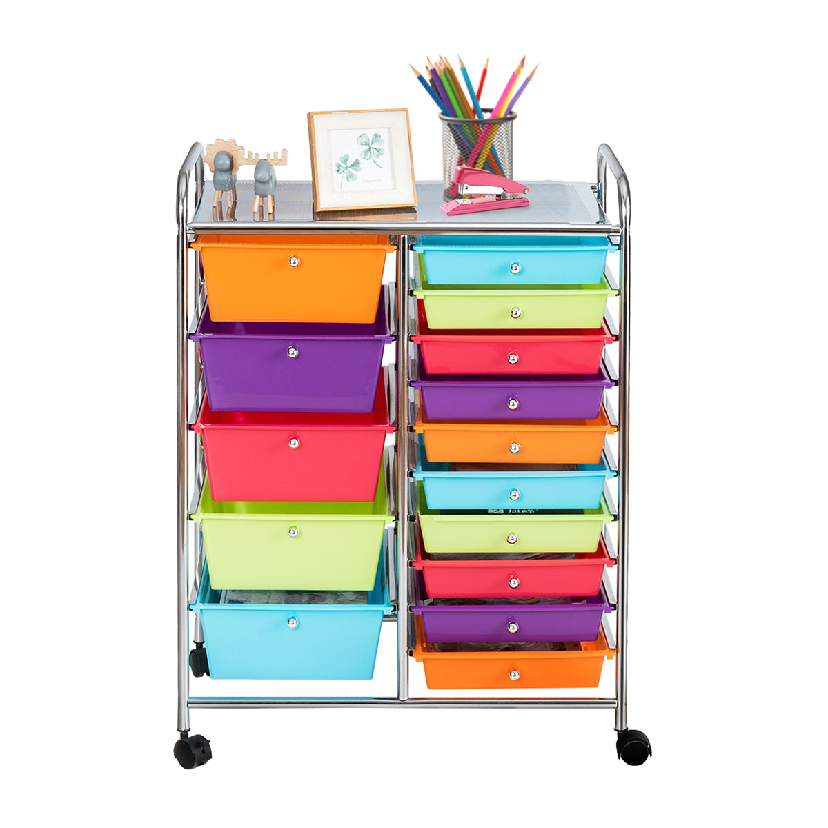 De LIVSK opbergwagen met 15 lades is dé oplossing voor het organiseren van al je spullen op kantoor, thuis, op school of in de garage. Met 5 grote lades en 10 kleinere lades biedt deze rolwagen voldoende opbergruimte. Gemaakt van duurzaam verchroomd staal en plastic lade-organizers, is deze opbergwagen ontworpen om lang mee te gaan. Dankzij de vier universele wielen kun je hem moeiteloos verplaatsen. Bestel nu en geniet van een opgeruimde omgeving!