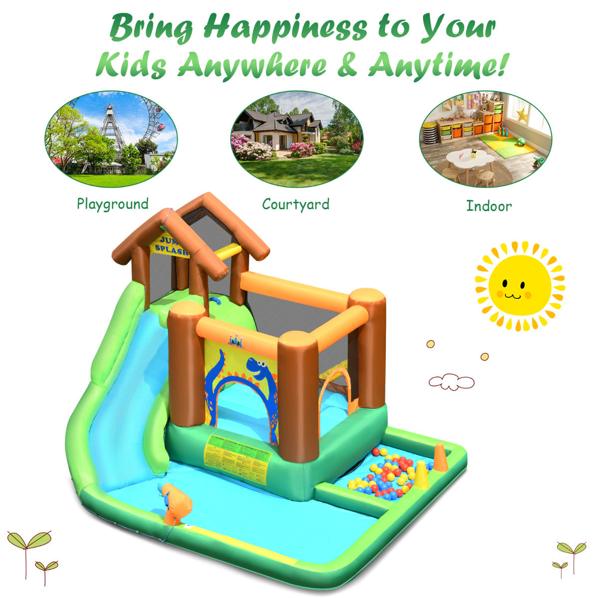 - Verschillende speelfuncties: Biedt mogelijkheden voor stuiteren, glijden, spelen met waterkanon, ballenbak en meer