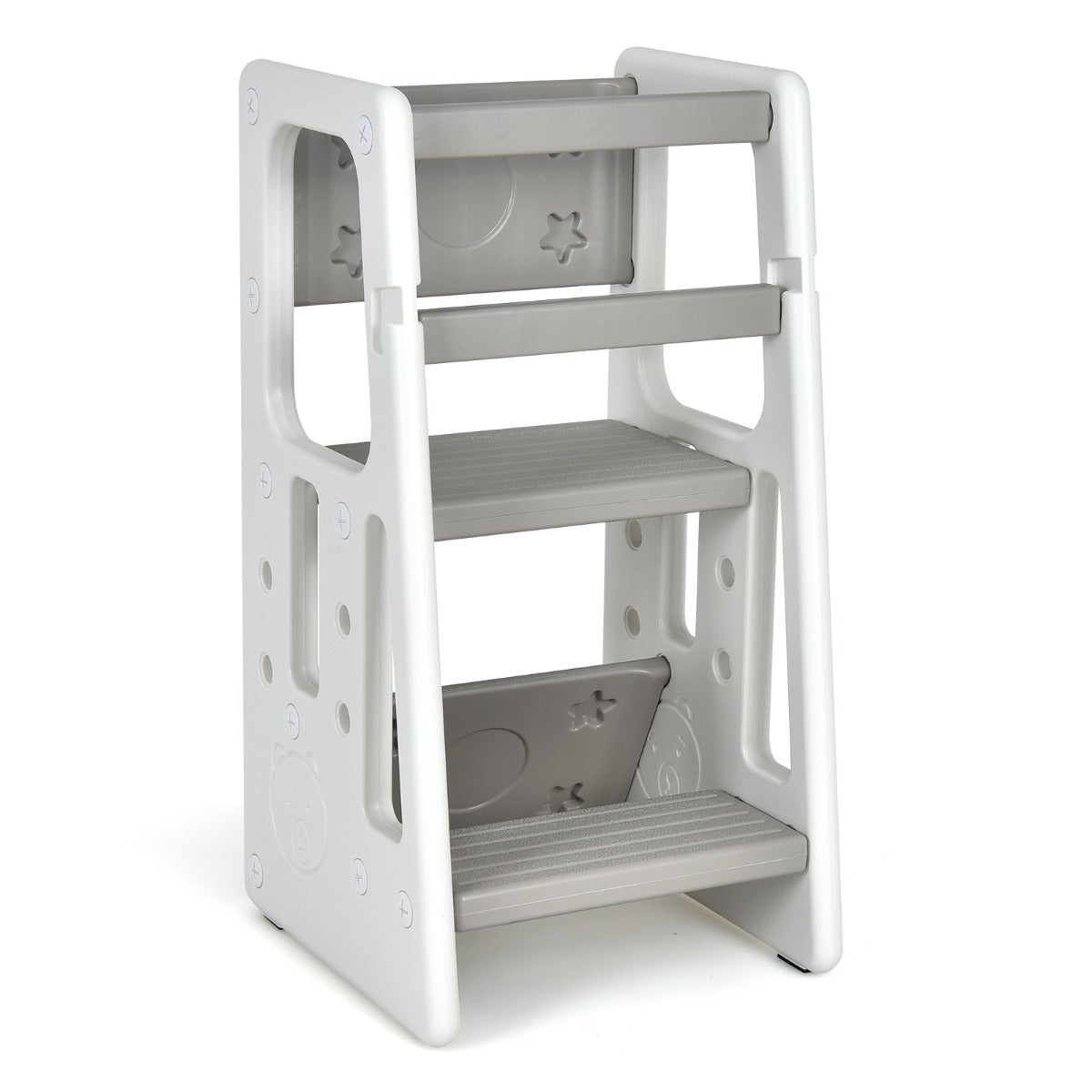 LIVSK Peutertoren Stapkruk - Verstelbare Hoogtes - Dubbele Veiligheidsrails - Antislip - Tot 90 kg - Grijs