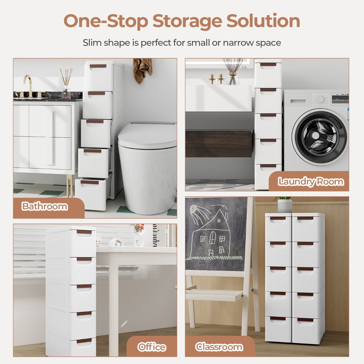 De LIVSK rollende opbergkast is de perfecte oplossing om je spullen op te bergen in stijl en gemak. Met vijf lades gemaakt van hoogwaardig en waterdicht PP-materiaal, biedt deze kast voldoende ruimte om je items georganiseerd te houden. Dankzij het slanke ontwerp past deze kast moeiteloos in kleine ruimtes in elke kamer.
