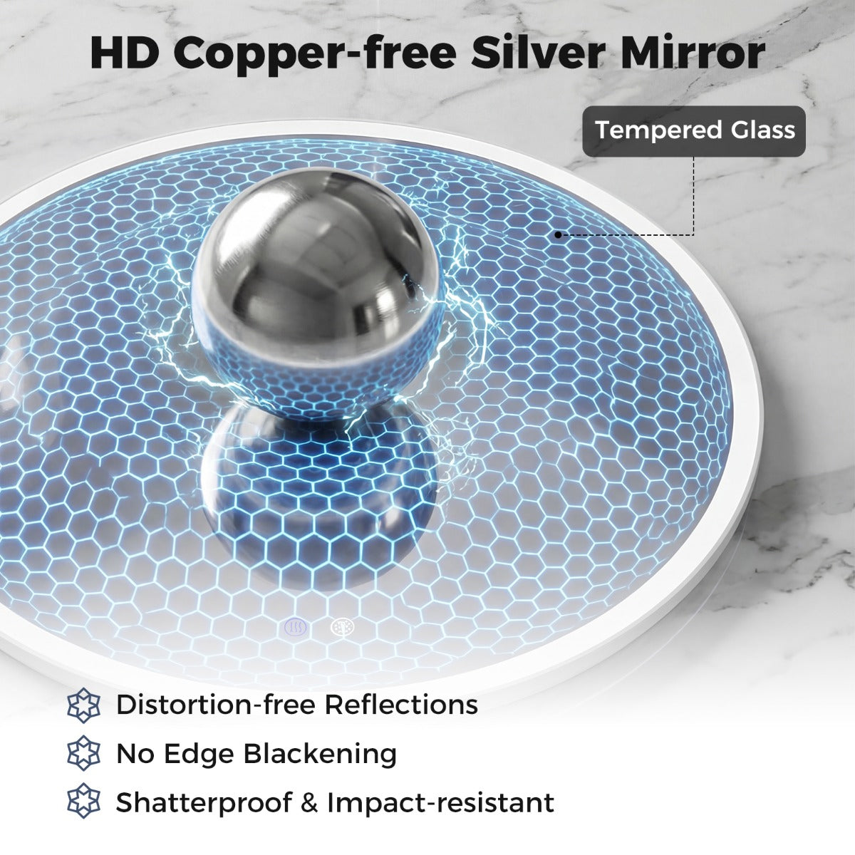 Verrijk je dagelijkse routine met de LIVSK ronde LED-badkamerspiegel. Deze slimme en opvallende spiegel biedt helder daglicht en gezellig warm licht, met 3 instelbare lichtkleuren en een traploze dimfunctie. Pas de verlichting moeiteloos aan op jouw behoeften. Gemaakt van hoogwaardig gehard glas met splintervrije folie voor maximale veiligheid. De kopervrije zilveren coating zorgt voor kristalheldere en scherpe reflecties. Met de automatische ontwasemingsfunctie en geheugenfunctie is stylen na het douchen een fluitje van een cent. Montage is snel en eenvoudig met de meegeleverde montageset en handschoenen, waardoor deze moderne upgrade perfect is voor elke badkamer!