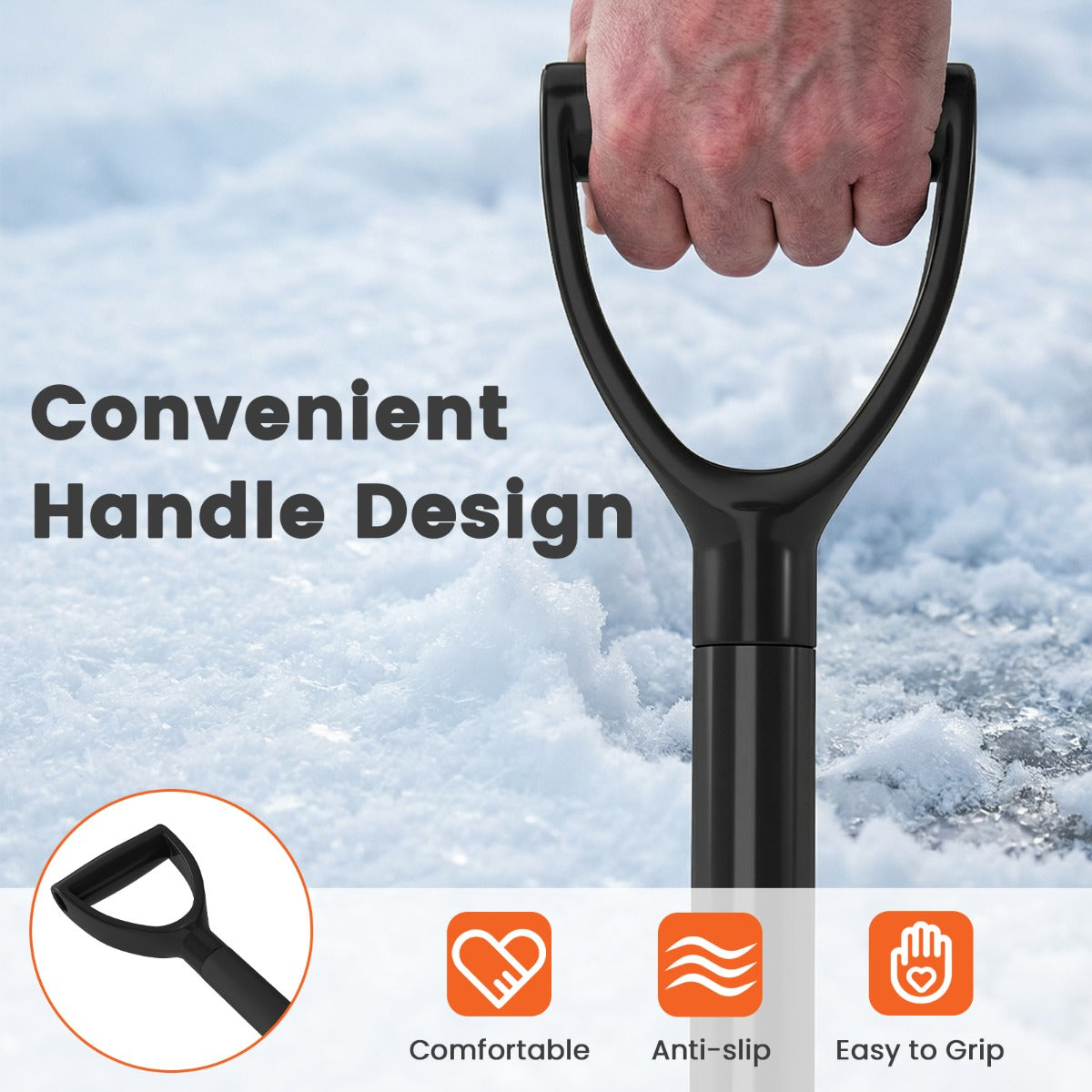 De LIVSK sneeuwschuiver is een veelzijdig gereedschap dat het hele jaar door gebruikt kan worden. Met een diep blad van 31,5 x 25,5 cm ruimt deze schuiver efficiënt sneeuw, aarde, bladeren en puin op, waardoor het ideaal is voor diverse klussen rondom het huis of op de camping. De stevige steel van 1,4 mm dik roestvrij aluminium is bestand tegen buigen en vervormen, wat zorgt voor betrouwbaarheid tijdens intensief gebruik. De antisliphandgreep biedt een comfortabele en veilige grip, zelfs bij langdurig gebruik. Deze schep is eenvoudig te monteren en demonteren, compact op te bergen en ideaal voor onderweg, waardoor het een handig multifunctioneel gereedschap is om je buitenruimtes schoon te houden.