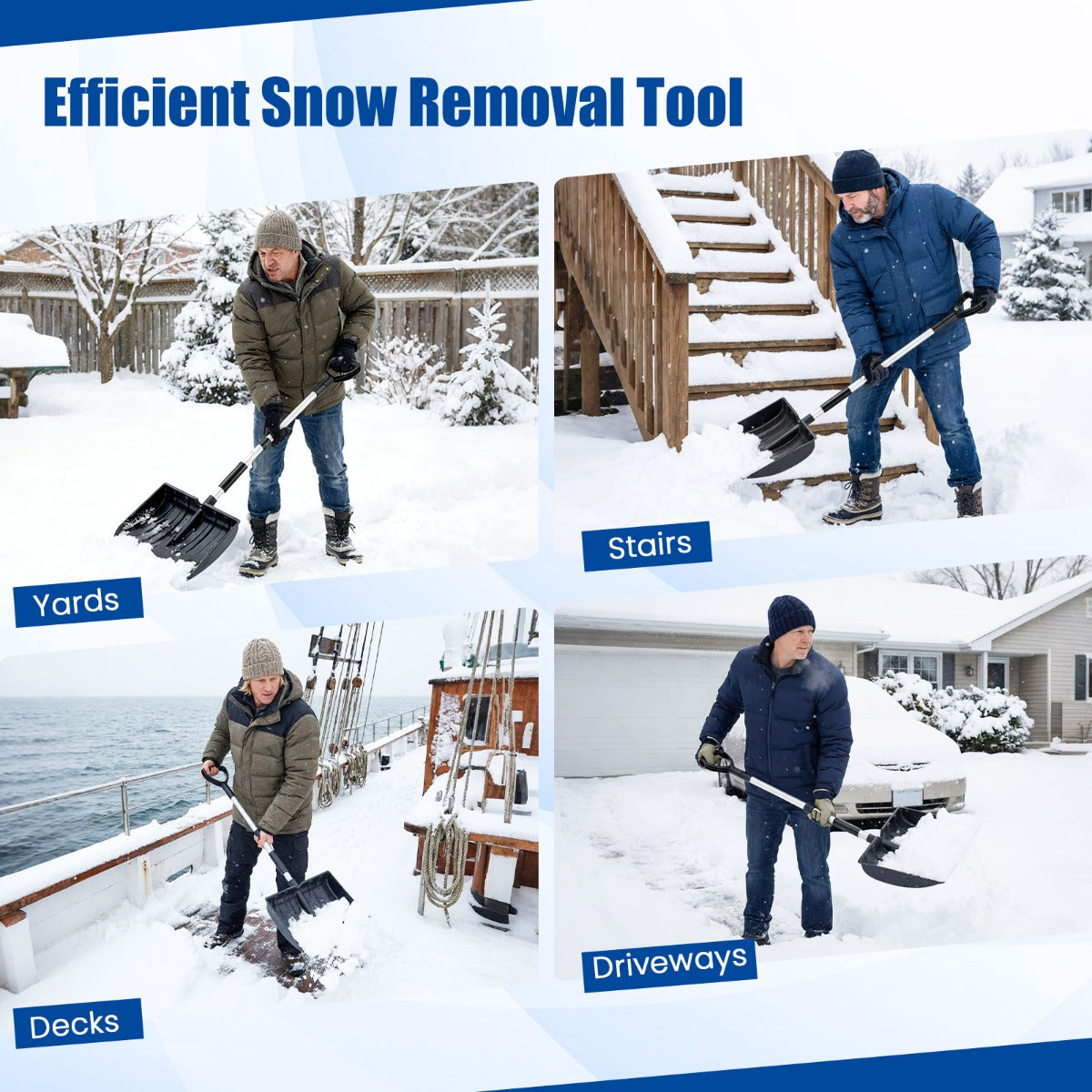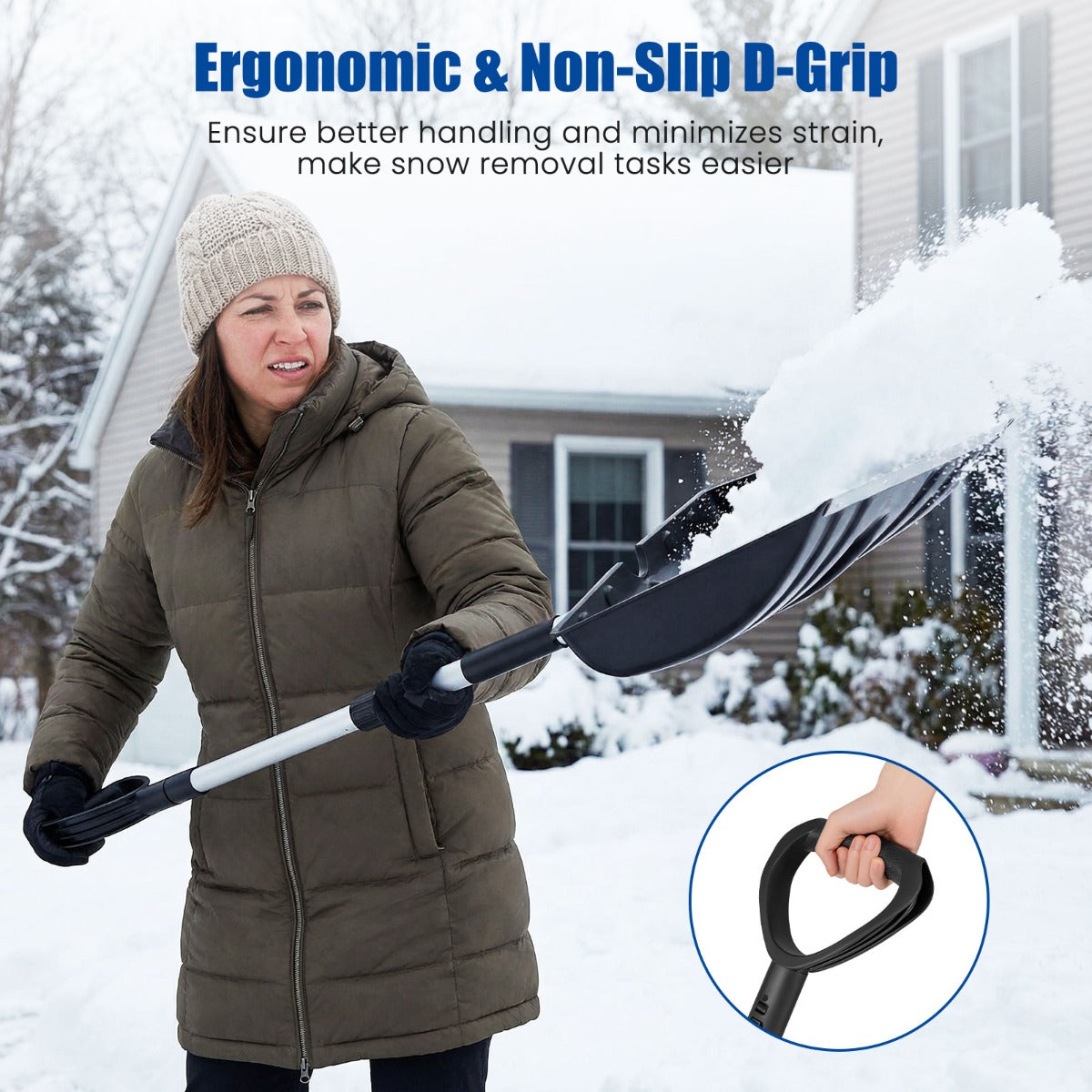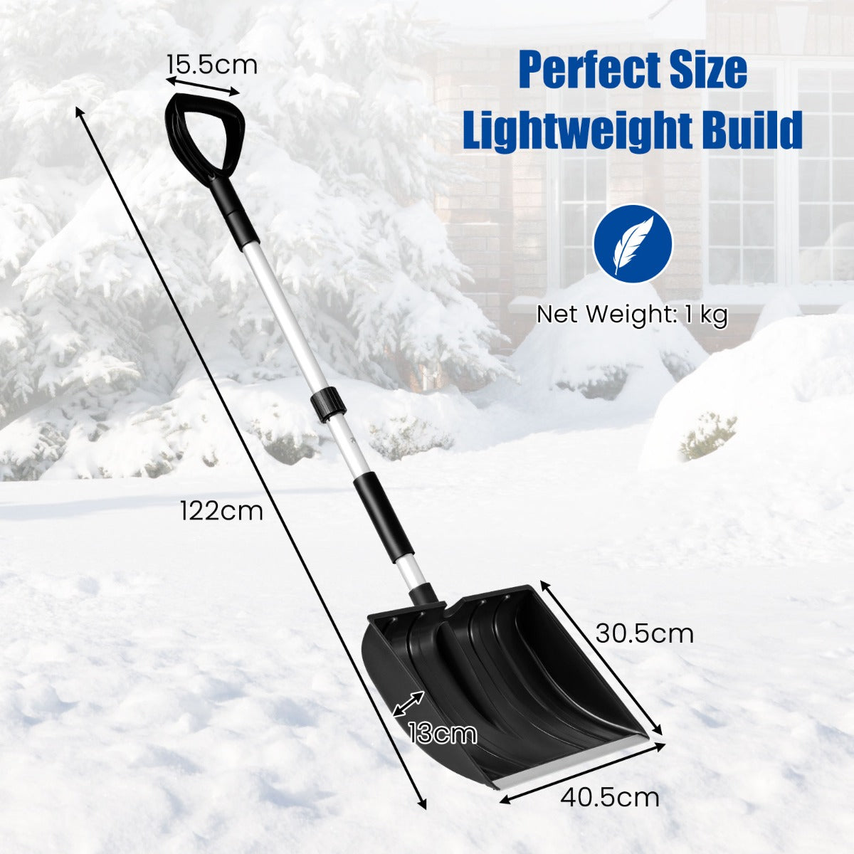 - Snel sneeuwruimen: Breed blad en diep, gebogen ontwerp verhogen de efficiëntie bij het ruimen van sneeuw