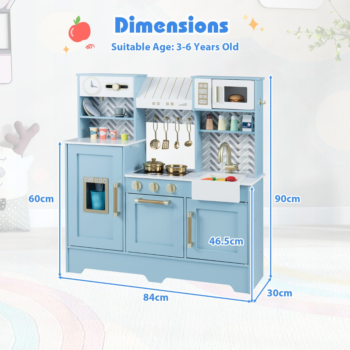 Laat je kinderen nog meer plezier beleven met de LIVSK speelkeuken. Deze kinderkeuken combineert realistische functies met veiligheid, waardoor het perfect is voor kleine koks. Met 2 kookplaten, een magnetron, een afzuigkap en draaibare knoppen met geluidseffecten, biedt deze speelkeuken eindeloos speelplezier. Ontdek de wereld van culinair spelen met een koffiezetapparaat, ijsblokjesmachine, klok en een draaibare kraan met spoelbak voor het naspelen van fantastische dessertavonturen. Bovendien stimuleert de LIVSK speelkeuken verantwoordelijkheid en organisatie dankzij de vele opbergmogelijkheden, zoals kasten, planken, haken en platengroeven.