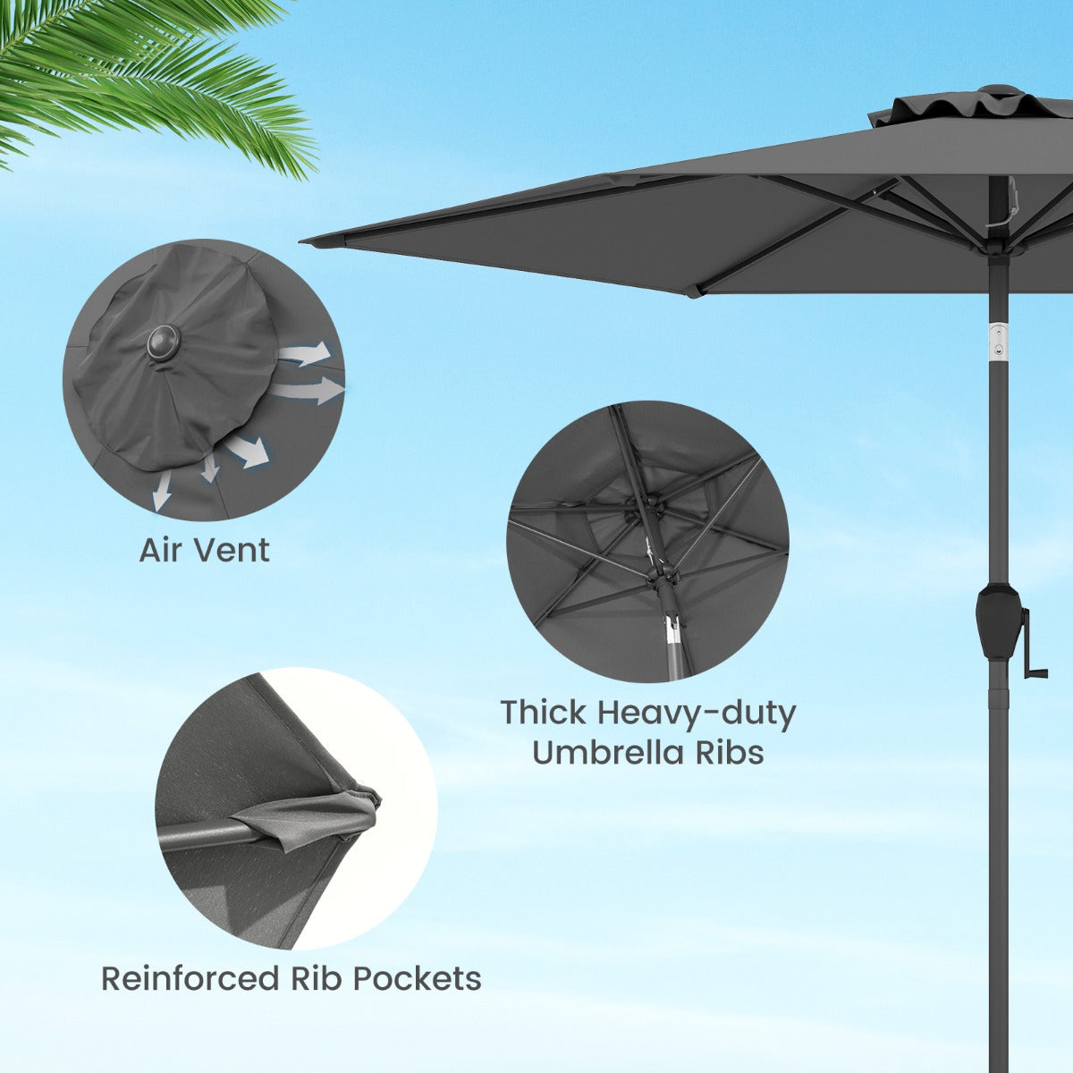 - Kantelsysteem met drukknop: Pas de hoek van de parasol eenvoudig aan tot 35°