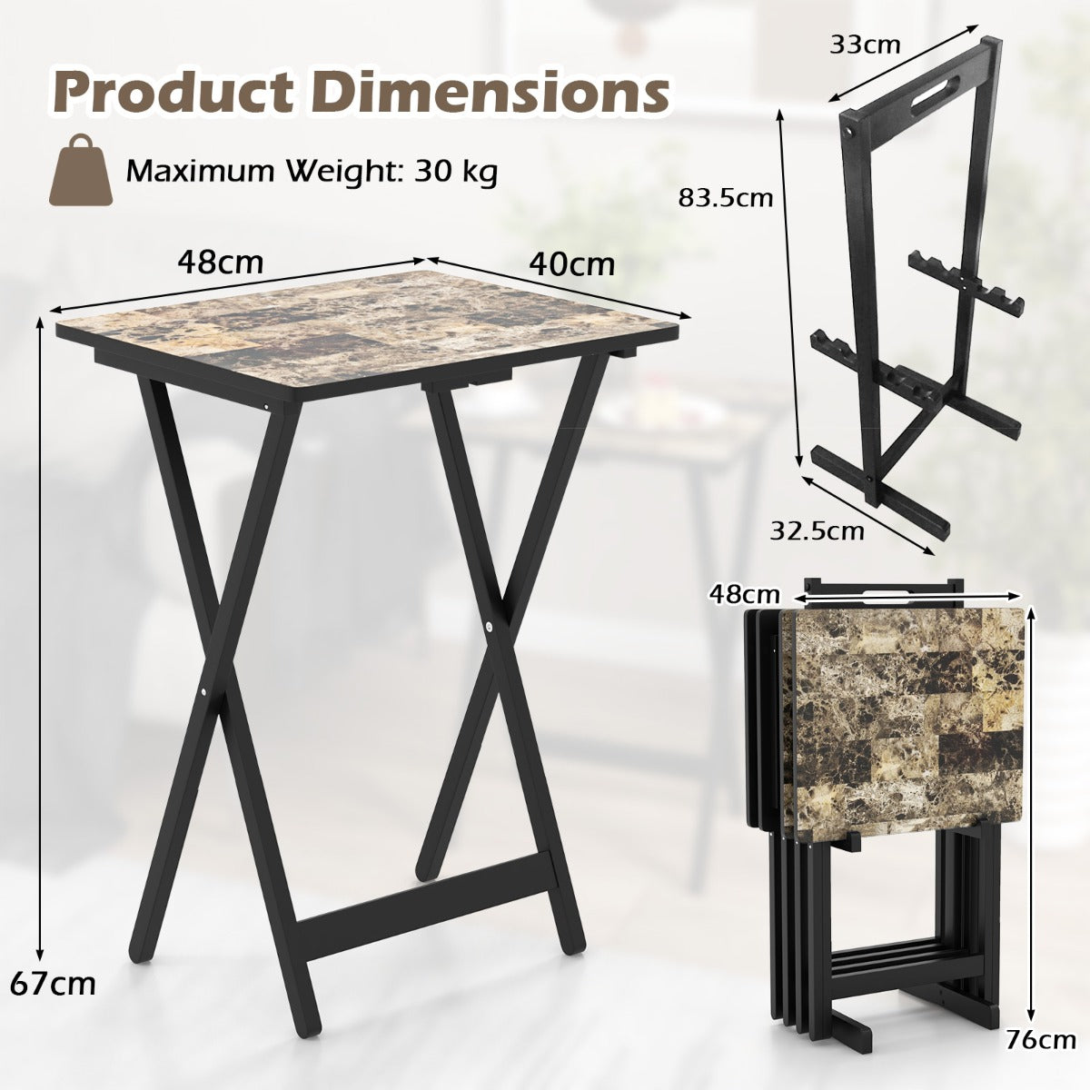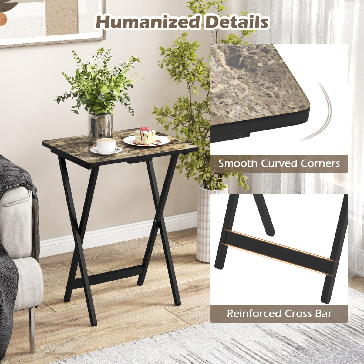 LIVSK Tuintafelset van 4 Opklapbare Bijzettafels - Duurzaam Rubberhout - Elegant Imitatiemarmer - Waterdicht - Zwart