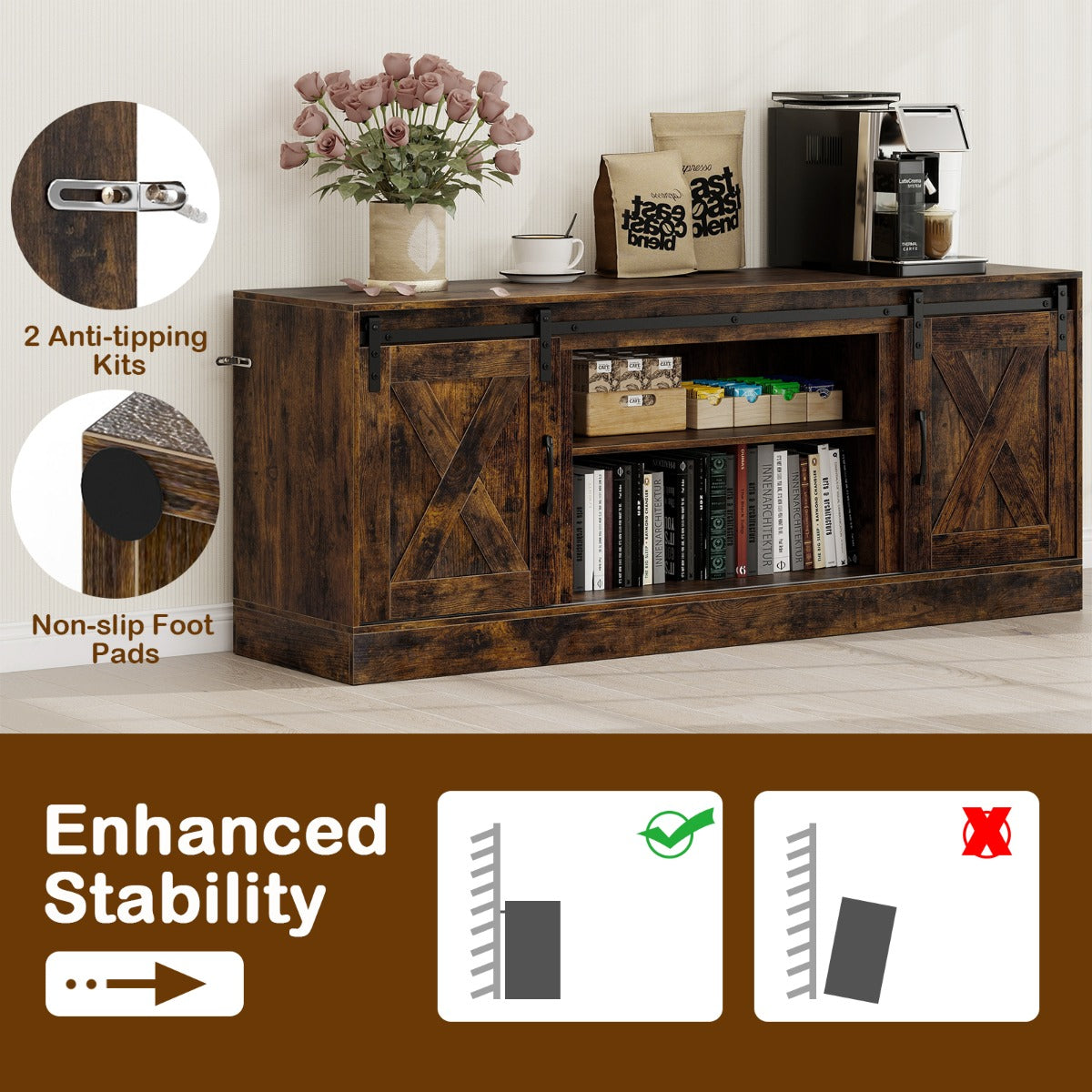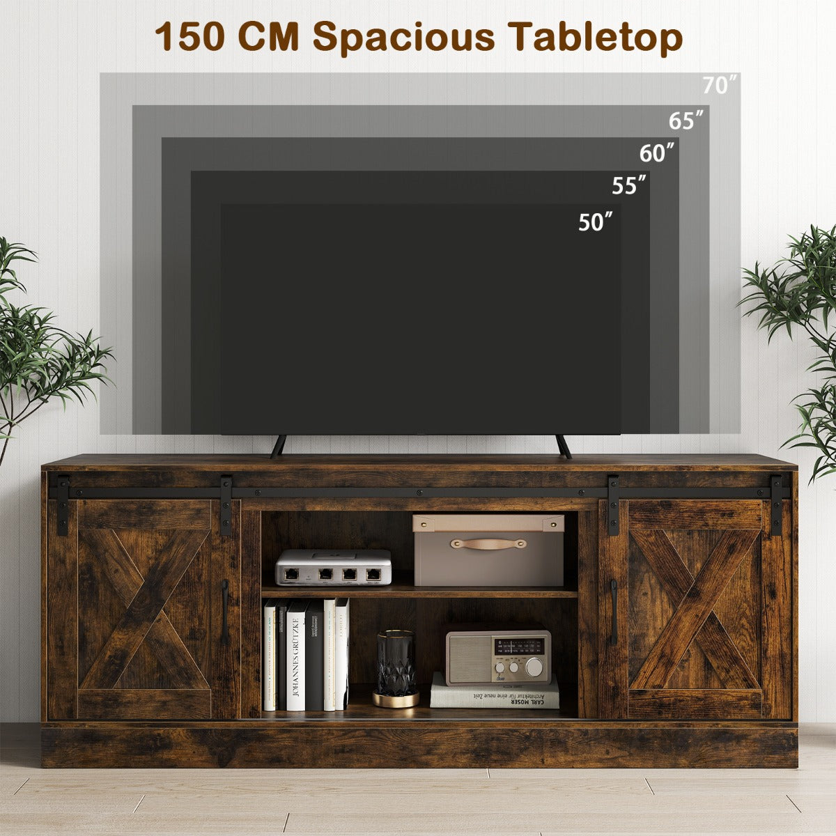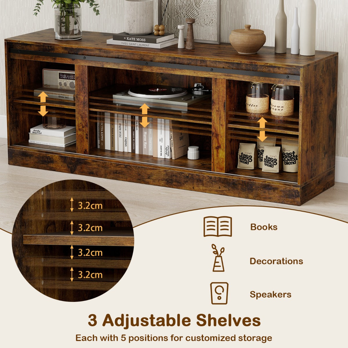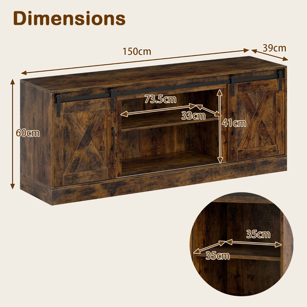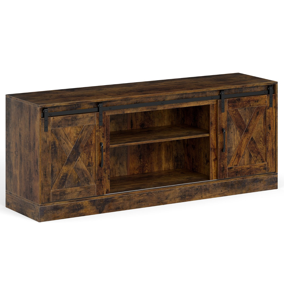 Ontdek de charme en functionaliteit van de LIVSK tv-standaard in boerderijstijl! Deze betoverende tv-standaard is voorzien van klassieke schuifdeuren in schuurstijl die soepel over hoogwaardige aluminium rails glijden. Met authentieke rustieke details verfraait dit meubelstuk niet alleen je woonkamer, maar biedt het ook een slimme oplossing voor al je opbergproblemen. De 3 verstelbare planken creëren ruimte voor technische apparatuur of decoratieve schatten, waardoor alles netjes opgeborgen kan worden. Geschikt voor tv's tot 70 inch, transformeert deze tv-standaard moeiteloos van een mediacentrum naar een elegant dressoir of opbergconsole in de slaapkamer.