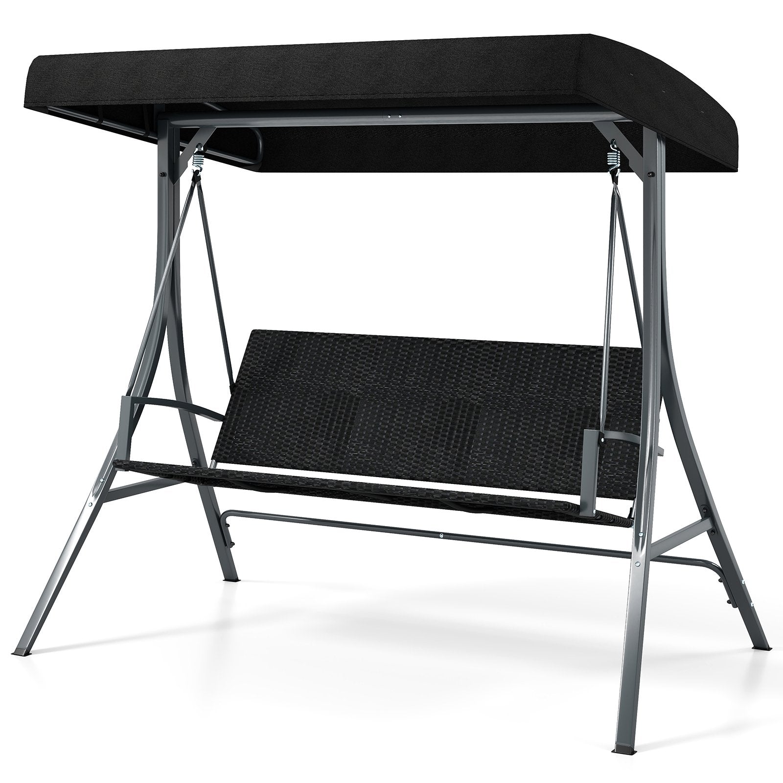 Ontspan en geniet van het buitenleven in stijl met de LIVSK veranda schommelbank voor 3 personen. Deze schommel combineert functionaliteit met comfort voor een ultieme ontspanningservaring. Met een verstelbare luifel van 65° biedt deze schommel volop schaduw, die je eenvoudig kunt aanpassen aan je voorkeuren met de knoppen aan beide zijden. De rieten zitting en rugleuning zijn niet alleen elegant, maar ook stevig, ademend en duurzaam. Het stabiele metalen A-frame en sterke veren zorgen voor comfortabel zitplek voor 3 personen met een draagcapaciteit tot 450 kg.