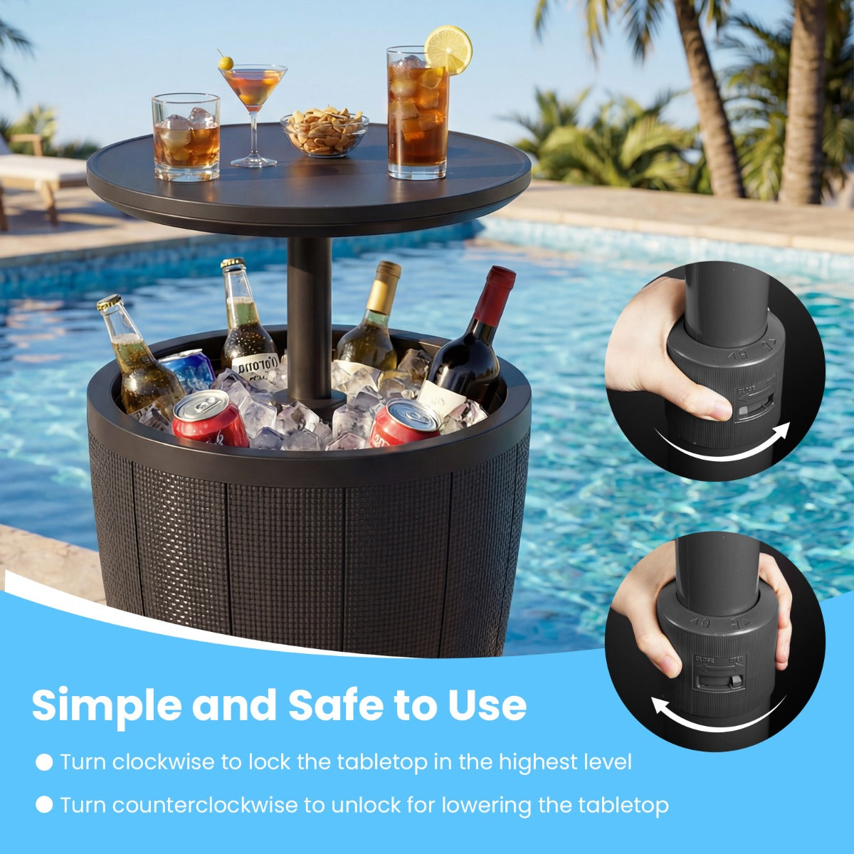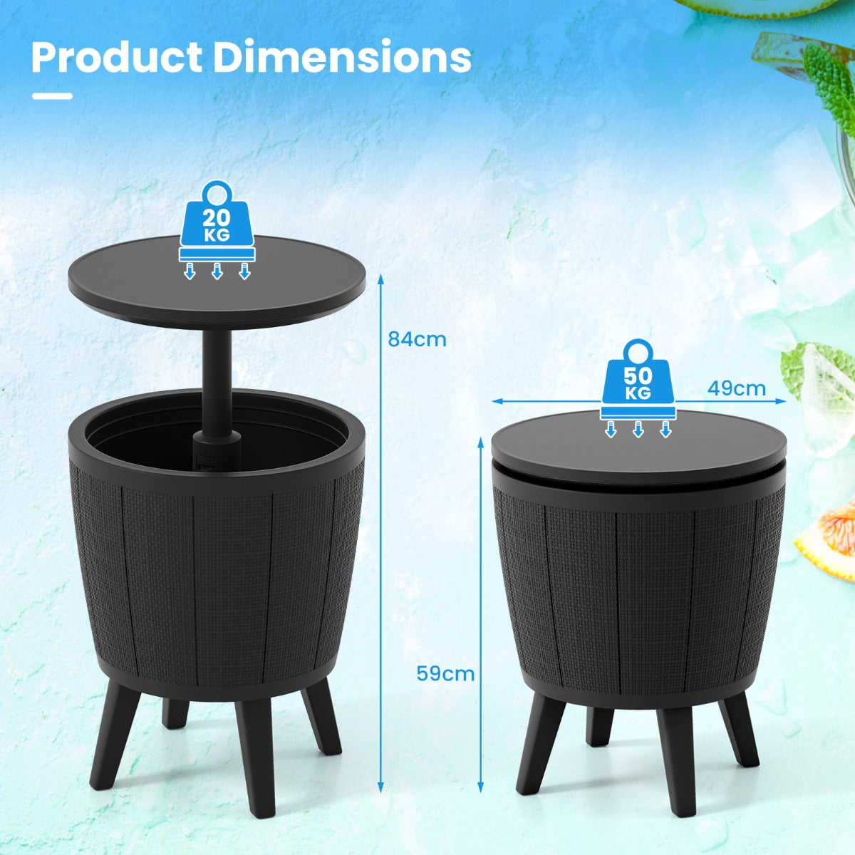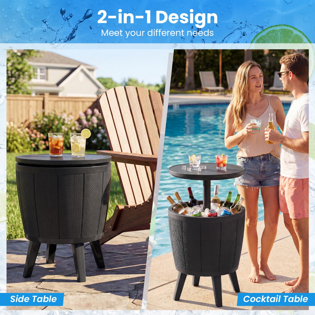 - Veelzijdig 2-in-1 ontwerp: verstelbaar deksel voor gebruik als tuintafel of cocktailtafel
